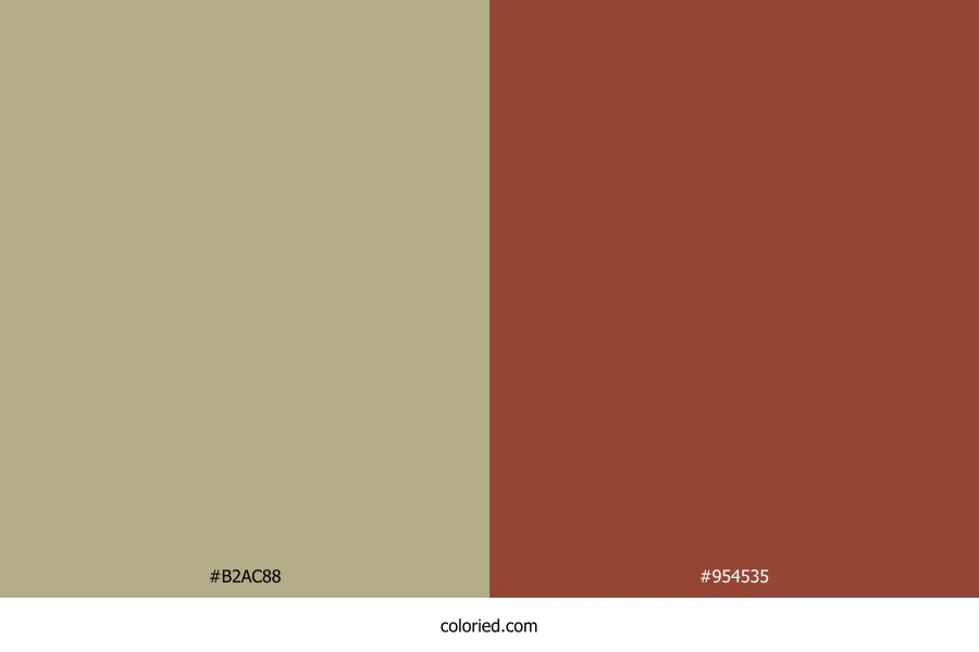 ![]() | #B2AC88 | 178, 172, 136 | 51, 21%, 62% | 0%, 3%, 24%, 30% | oklch(0.740 0.050 100) |