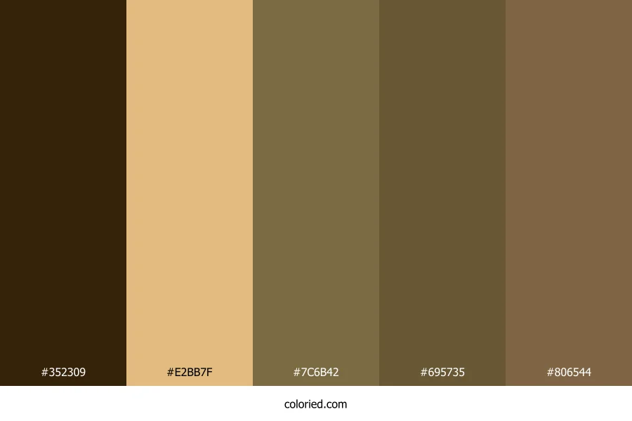 ![]() | #352309 | 53, 35, 9 | 35, 71%, 12% | 0%, 34%, 83%, 79% | oklch(0.272 0.047 73) |