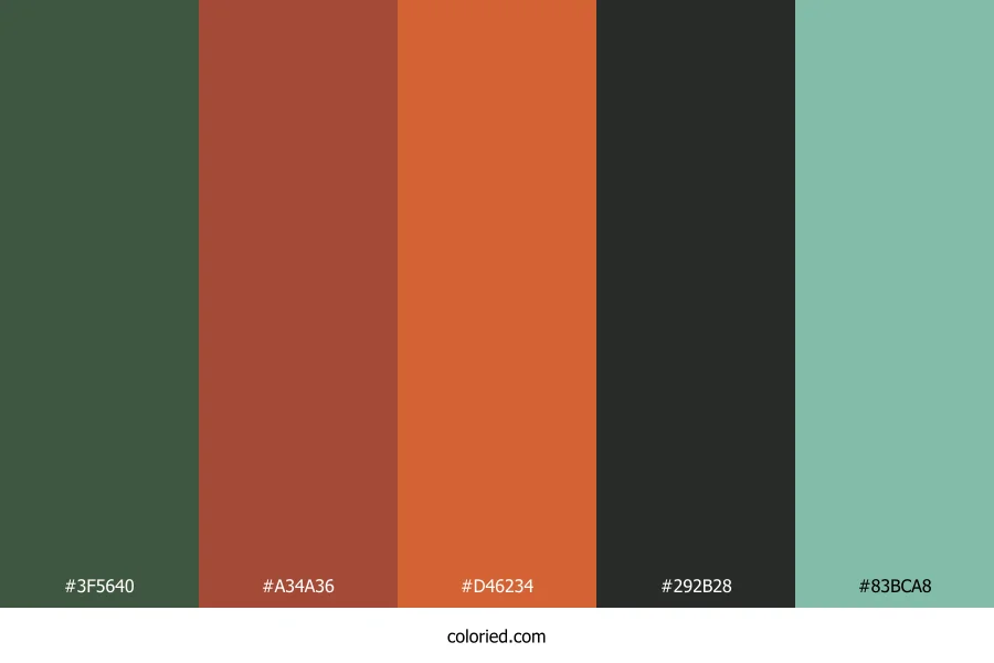 ![]() | #3F5640 | 63, 86, 64 | 123, 15%, 29% | 27%, 0%, 26%, 66% | oklch(0.427 0.046 146) |