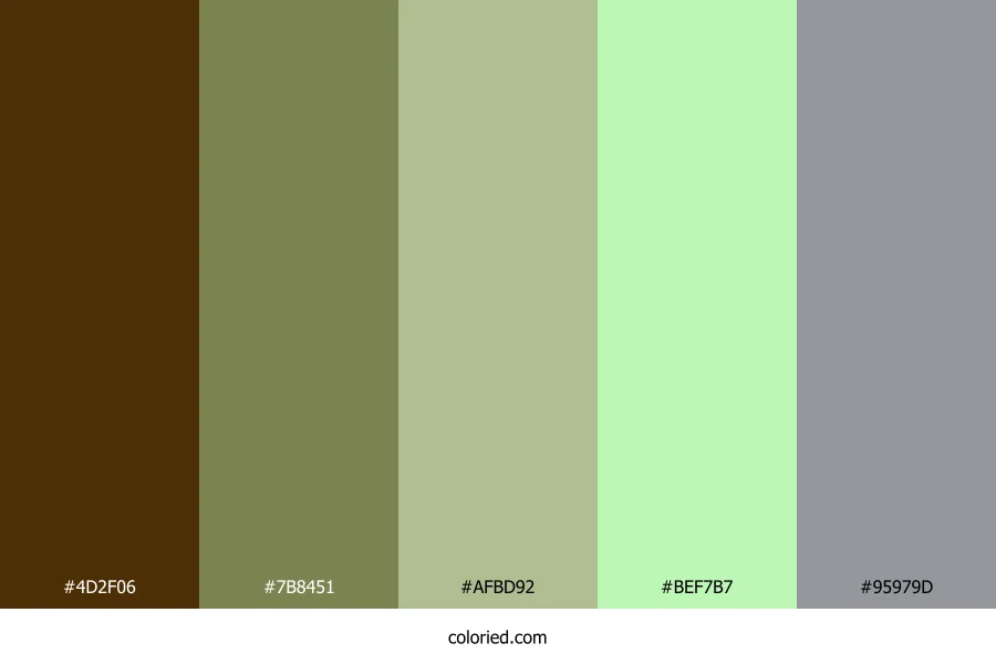 | #AFBD92 | 175, 189, 146 | 80, 25%, 66% | 7%, 0%, 23%, 26% | oklch(0.776 0.061 123) | |