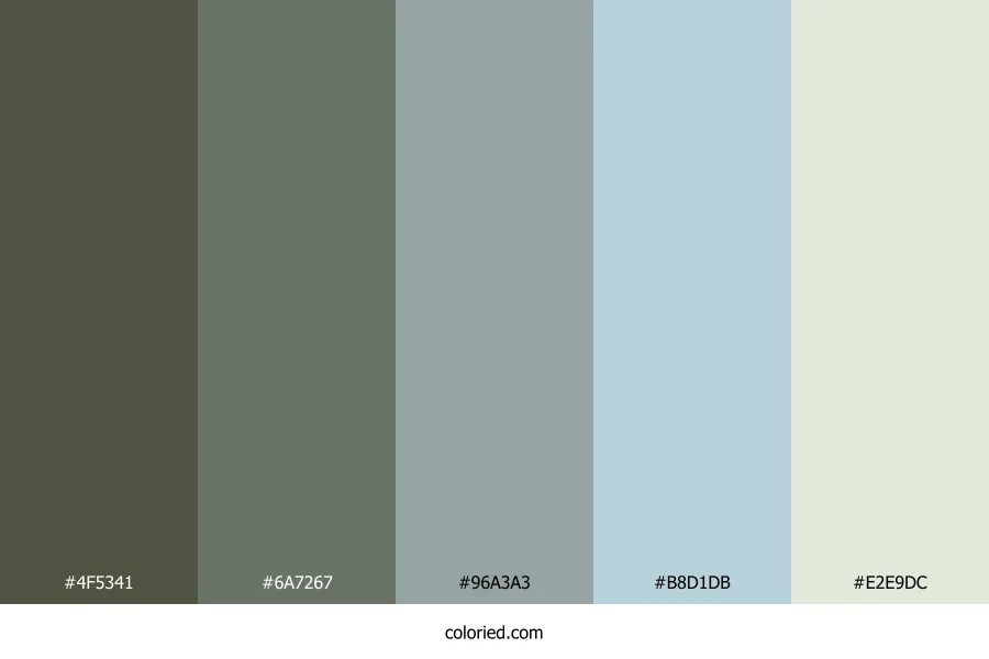 ![]() | #4F5341 | 79, 83, 65 | 73, 12%, 29% | 5%, 0%, 22%, 67% | oklch(0.433 0.029 118) |