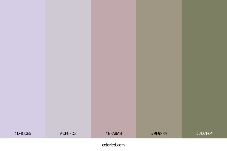 | #CFC8D3 | 207, 200, 211 | 278, 11%, 81% | 2%, 5%, 0%, 17% | oklch(0.842 0.017 313) | |