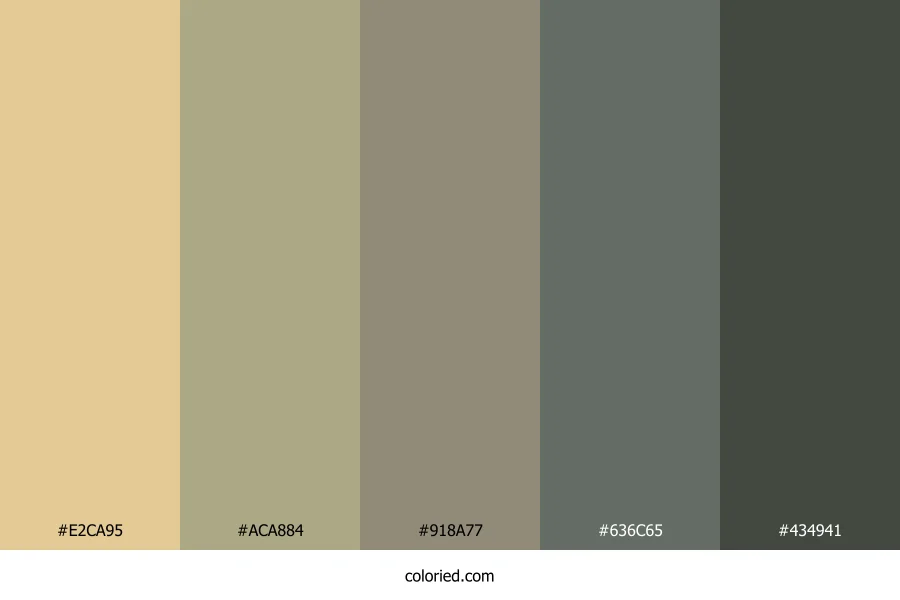 | #ACA884 | 172, 168, 132 | 54, 19%, 60% | 0%, 2%, 23%, 33% | oklch(0.726 0.050 102) | |