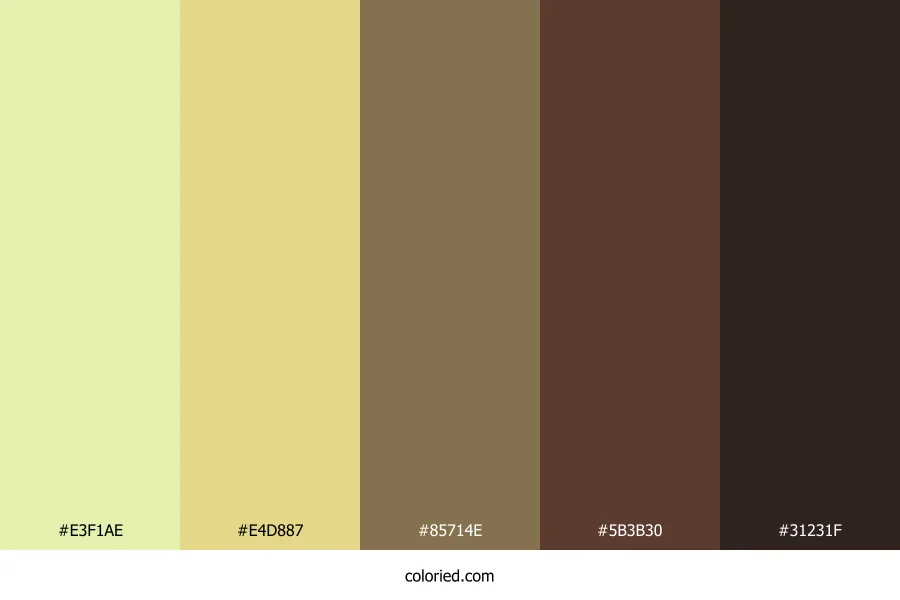 | #E4D887 | 228, 216, 135 | 52, 63%, 71% | 0%, 5%, 41%, 11% | oklch(0.874 0.103 101) | |