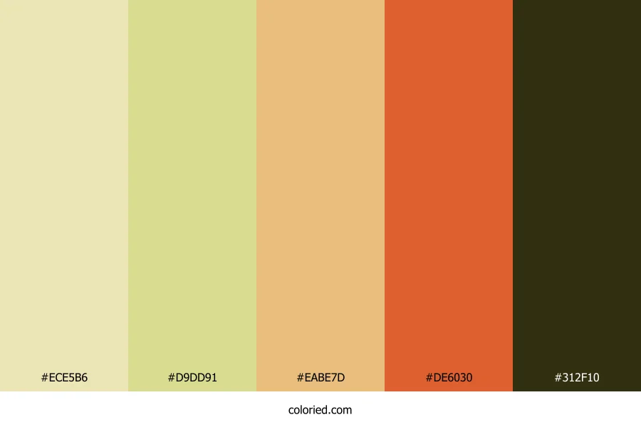| #D9DD91 | 217, 221, 145 | 63, 53%, 72% | 2%, 0%, 34%, 13% | oklch(0.877 0.097 111) | |