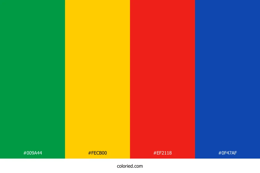 ![]() | #009A44 | 0, 154, 68 | 146, 100%, 30% | 100%, 0%, 56%, 40% | oklch(0.599 0.167 150) |