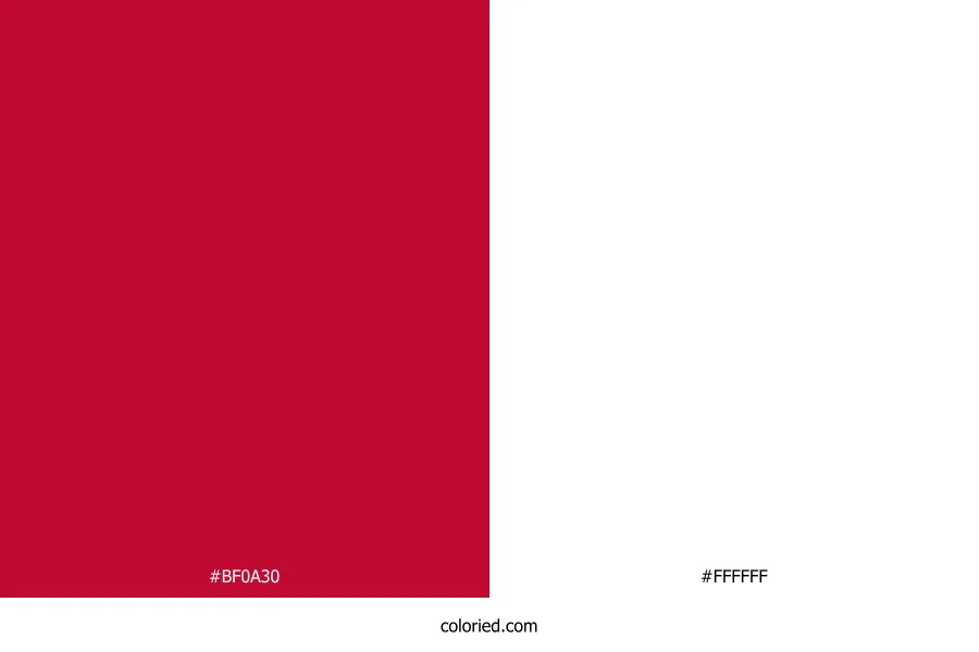![]() | #BF0A30 | 191, 10, 48 | 347, 90%, 39% | 0%, 95%, 75%, 25% | oklch(0.512 0.202 21) |