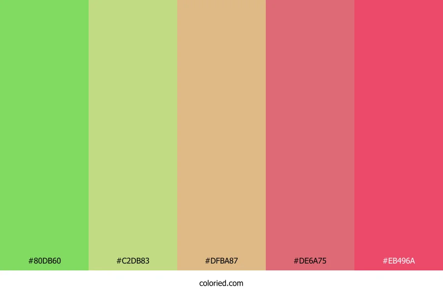 ![]() | #80DB60 | 128, 219, 96 | 104, 63%, 62% | 42%, 0%, 56%, 14% | oklch(0.808 0.182 138) |