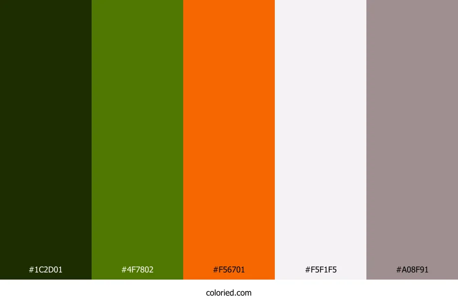 ![]() | #1C2D01 | 28, 45, 1 | 83, 96%, 9% | 38%, 0%, 98%, 82% | oklch(0.272 0.070 129) |