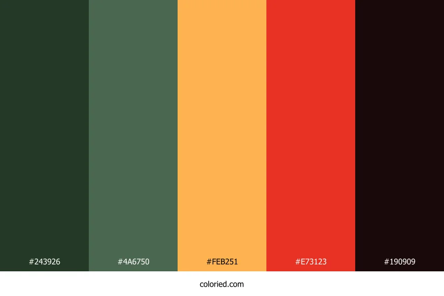 ![]() | #243926 | 36, 57, 38 | 126, 23%, 18% | 37%, 0%, 33%, 78% | oklch(0.321 0.043 147) |