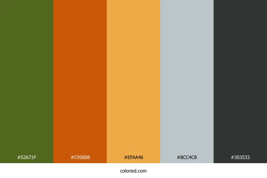 ![]() | #52671F | 82, 103, 31 | 78, 54%, 26% | 20%, 0%, 70%, 60% | oklch(0.481 0.100 124) |