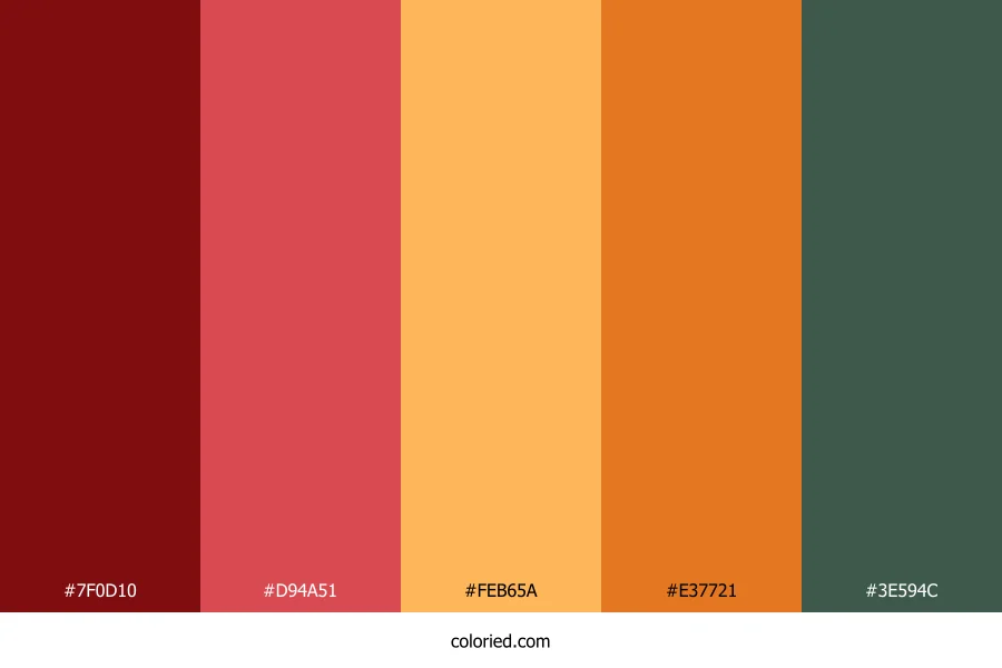![]() | #7F0D10 | 127, 13, 16 | 358, 81%, 27% | 0%, 90%, 87%, 50% | oklch(0.382 0.146 27) |