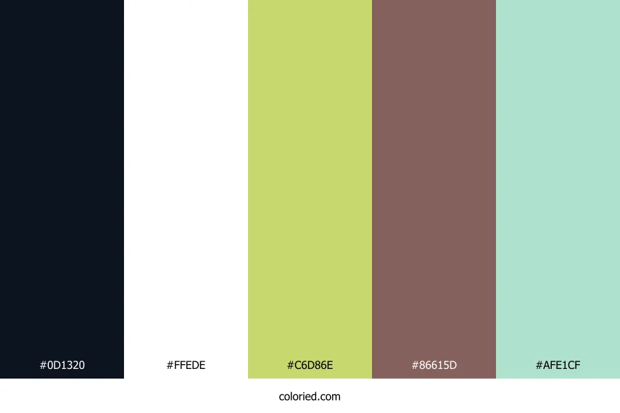 ![]() | #0D1320 | 13, 19, 32 | 221, 42%, 9% | 59%, 41%, 0%, 87% | oklch(0.188 0.028 265) |