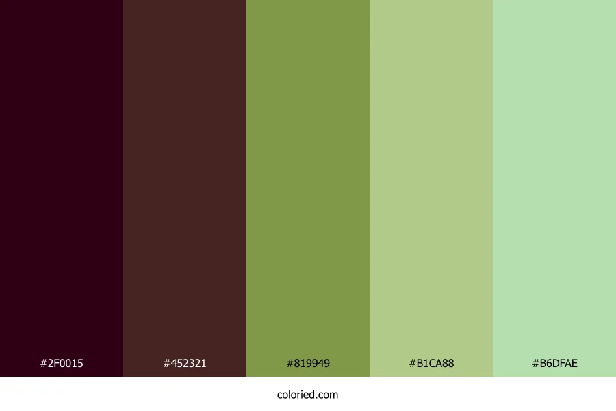| #B1CA88 | 177, 202, 136 | 83, 38%, 66% | 12%, 0%, 33%, 21% | oklch(0.804 0.092 125) | |