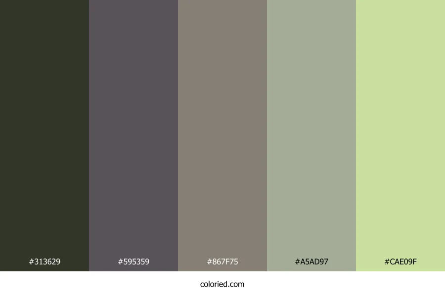 ![]() | #313629 | 49, 54, 41 | 83, 14%, 19% | 9%, 0%, 24%, 79% | oklch(0.324 0.023 125) |