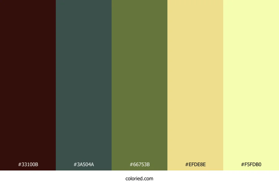| #66753B | 102, 117, 59 | 76, 33%, 35% | 13%, 0%, 50%, 54% | oklch(0.536 0.084 121) | |