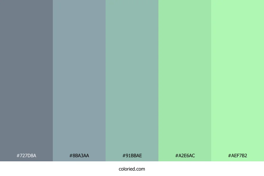 | #8BA3AA | 139, 163, 170 | 194, 15%, 61% | 18%, 4%, 0%, 33% | oklch(0.699 0.029 217) | |