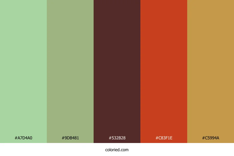 | #9DB481 | 157, 180, 129 | 87, 25%, 61% | 13%, 0%, 28%, 29% | oklch(0.739 0.075 128) | |