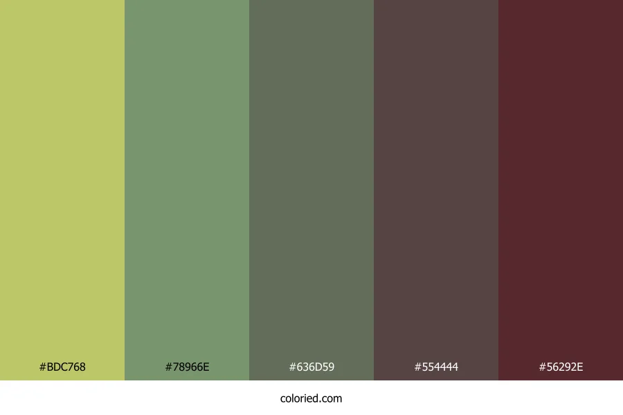 ![]() | #BDC768 | 189, 199, 104 | 66, 46%, 59% | 5%, 0%, 48%, 22% | oklch(0.802 0.120 114) |