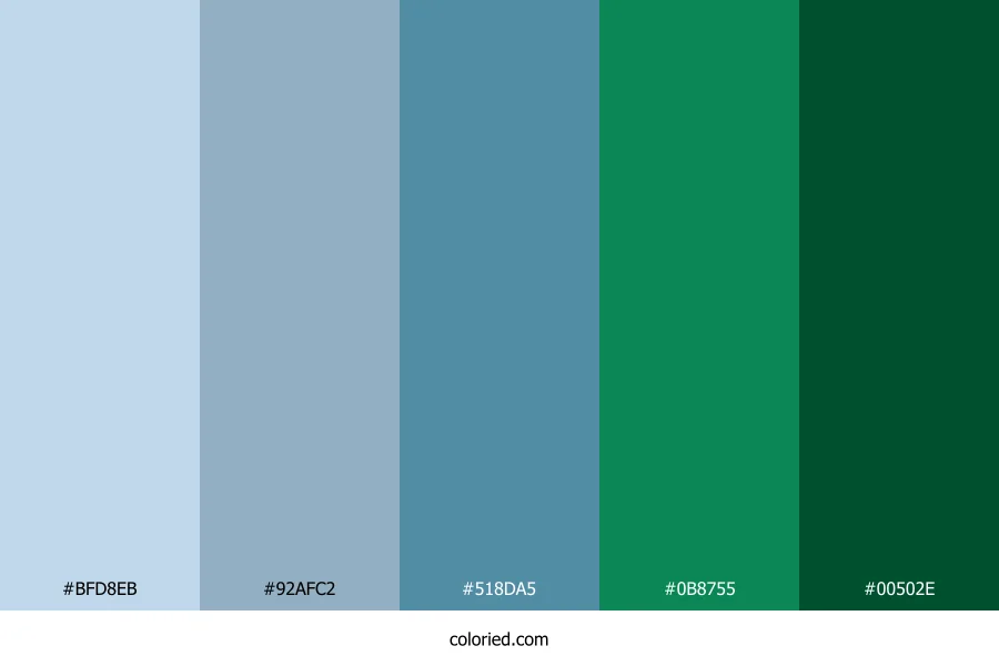| #00502E | 0, 80, 46 | 155, 100%, 16% | 100%, 0%, 42%, 69% | oklch(0.380 0.090 157) |