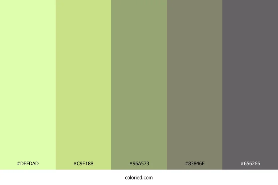 ![]() | #DEFDAD | 222, 253, 173 | 83, 95%, 84% | 12%, 0%, 32%, 1% | oklch(0.953 0.108 126) |