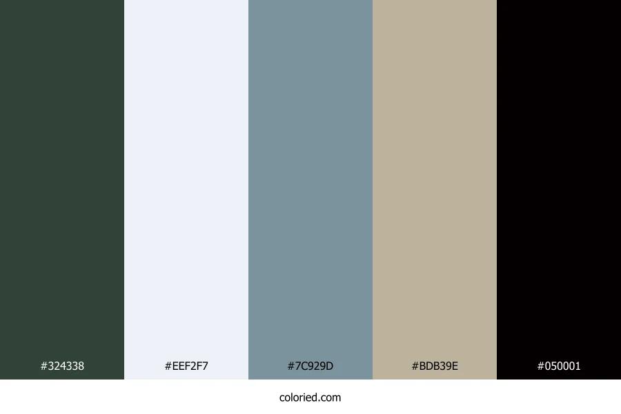 ![]() | #324338 | 50, 67, 56 | 141, 15%, 23% | 25%, 0%, 16%, 74% | oklch(0.364 0.029 156) |
