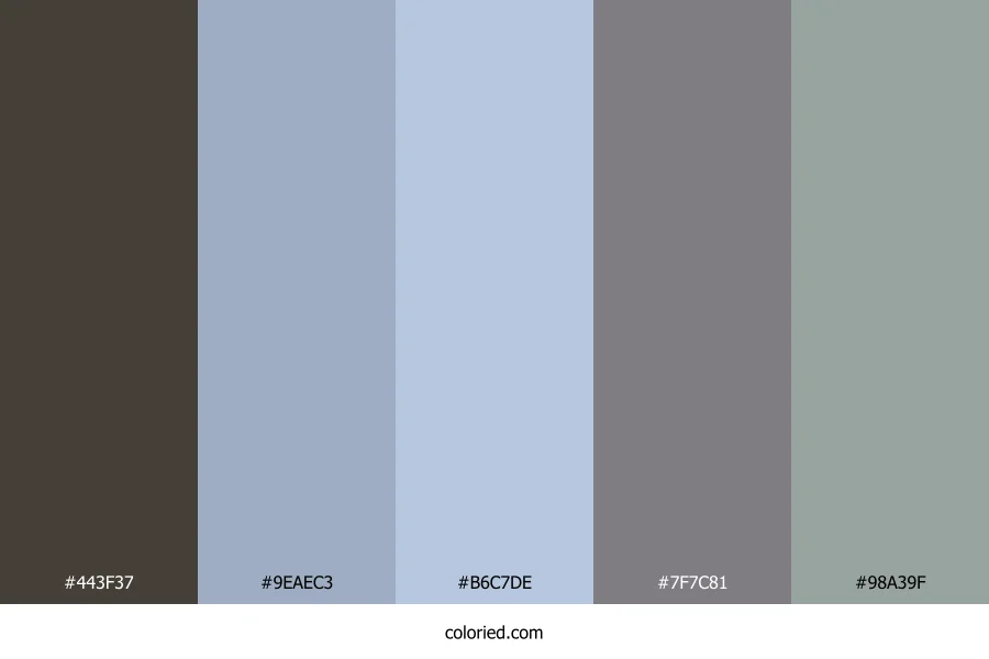 | #9EAEC3 | 158, 174, 195 | 214, 24%, 69% | 19%, 11%, 0%, 24% | oklch(0.745 0.035 255) | |