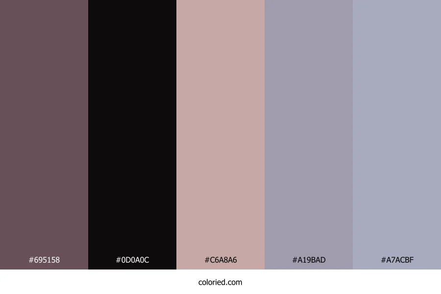 | #A19BAD | 161, 155, 173 | 260, 10%, 64% | 7%, 10%, 0%, 32% | oklch(0.700 0.027 301) | |