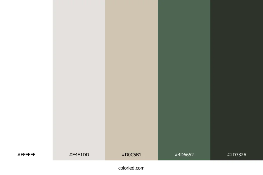 | #2D332A | 45, 51, 42 | 100, 10%, 18% | 12%, 0%, 18%, 80% | oklch(0.312 0.018 135) |