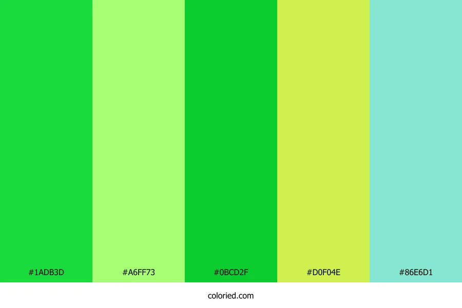 ![]() | #1ADB3D | 26, 219, 61 | 131, 79%, 48% | 88%, 0%, 72%, 14% | oklch(0.776 0.242 145) |