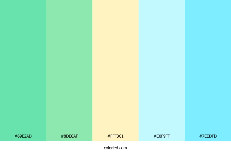 ![]() | #69E2AD | 105, 226, 173 | 154, 68%, 65% | 54%, 0%, 23%, 11% | oklch(0.829 0.134 163) |