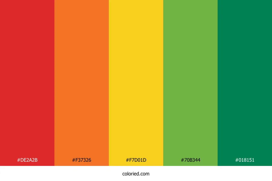 ![]() | #DE2A2B | 222, 42, 43 | 360, 73%, 52% | 0%, 81%, 81%, 13% | oklch(0.584 0.214 27) |