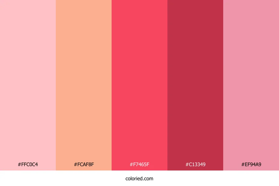 ![]() | #FFC0C4 | 255, 192, 196 | 356, 100%, 88% | 0%, 25%, 23%, 0% | oklch(0.866 0.073 14) |