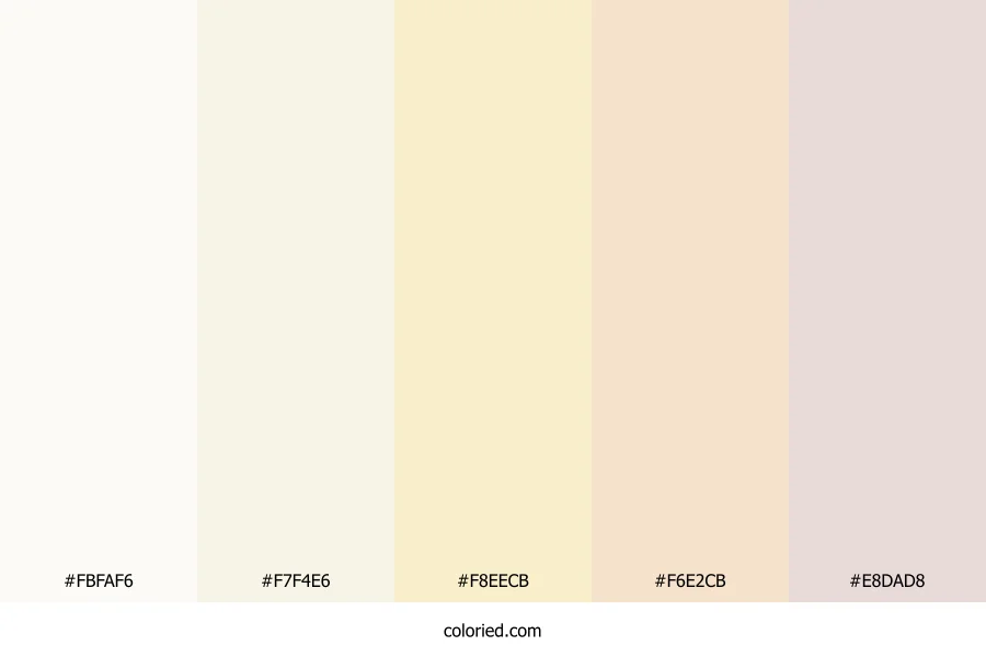 | #F7F4E6 | 247, 244, 230 | 49, 52%, 94% | 0%, 1%, 7%, 3% | oklch(0.966 0.019 97) | |