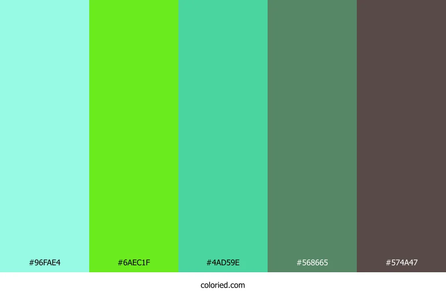 ![]() | #96FAE4 | 150, 250, 228 | 167, 91%, 78% | 40%, 0%, 9%, 2% | oklch(0.917 0.100 178) |