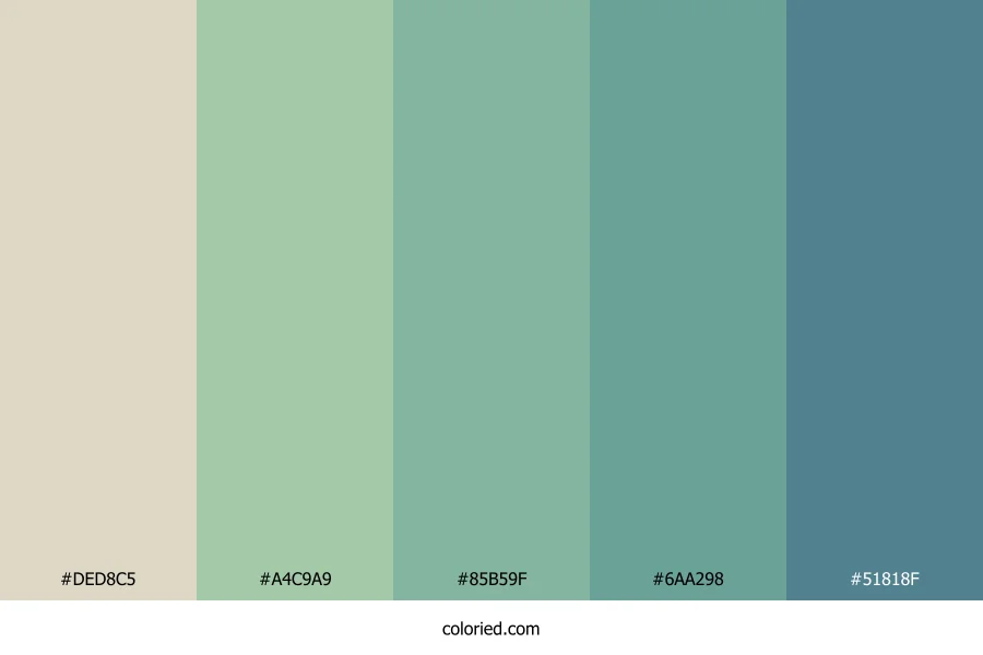 | #85B59F | 133, 181, 159 | 153, 24%, 62% | 27%, 0%, 12%, 29% | oklch(0.733 0.060 165) | |