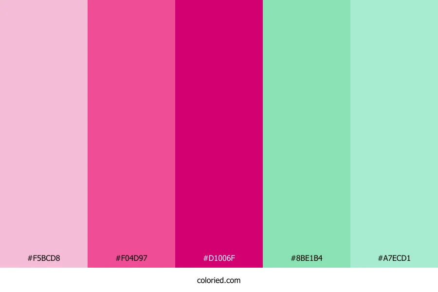 ![]() | #F5BCD8 | 245, 188, 216 | 331, 74%, 85% | 0%, 23%, 12%, 4% | oklch(0.855 0.074 348) |