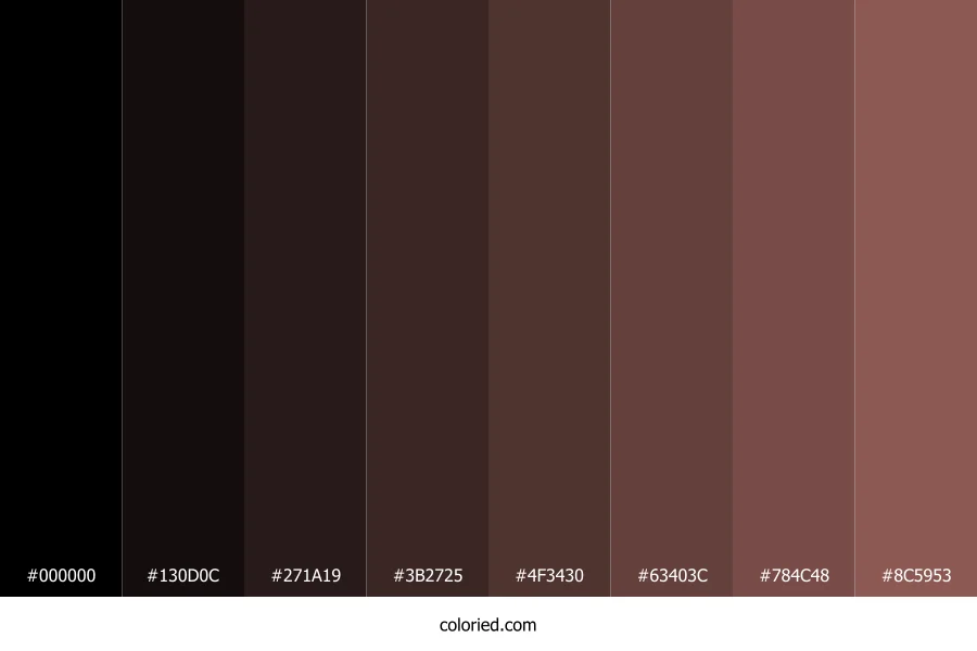 | #8C5953 | 140, 89, 83 | 6, 26%, 44% | 0%, 36%, 41%, 45% | oklch(0.519 0.069 27) |