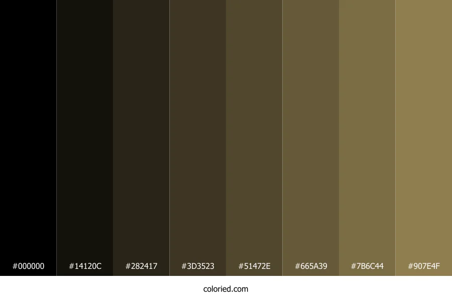 | #907E4F | 144, 126, 79 | 43, 29%, 44% | 0%, 12%, 45%, 44% | oklch(0.598 0.068 89) |