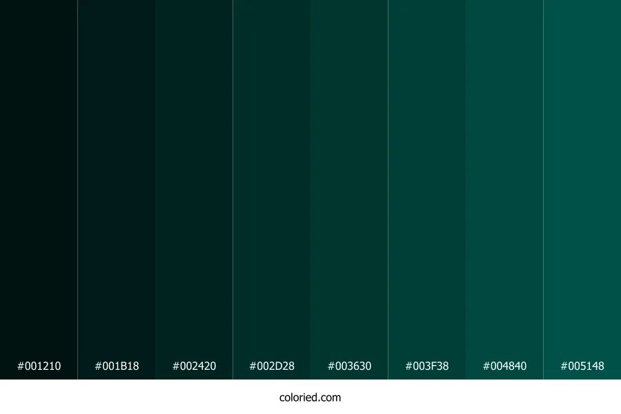 | #003630 | 0, 54, 48 | 173, 100%, 11% | 100%, 0%, 11%, 79% | oklch(0.299 0.053 183) | |