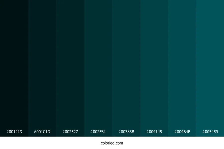 ![]() | #001213 | 0, 18, 19 | 183, 100%, 4% | 100%, 5%, 0%, 93% | oklch(0.165 0.028 199) |