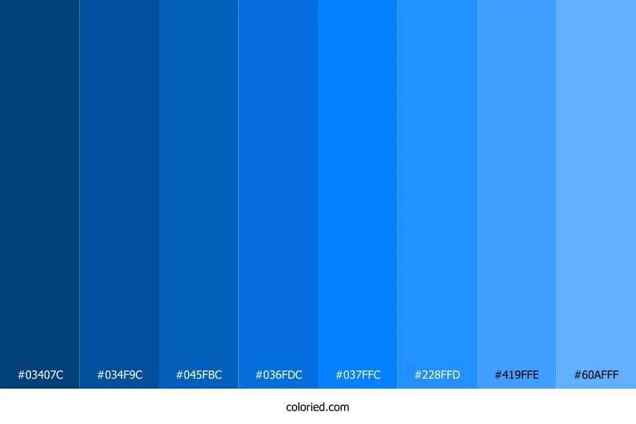 | #037FFC | 3, 127, 252 | 210, 98%, 50% | 99%, 50%, 0%, 1% | oklch(0.611 0.208 256) | |