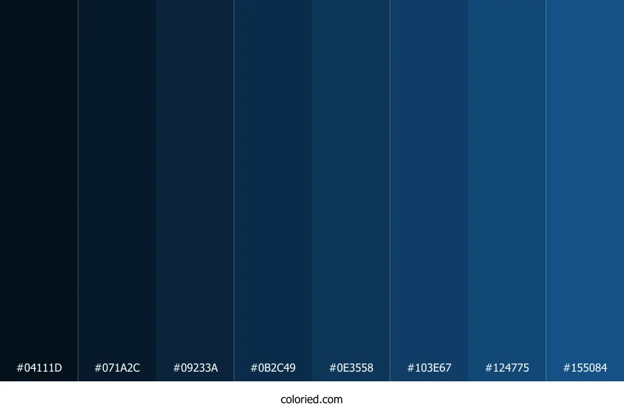 ![]() | #04111D | 4, 17, 29 | 209, 76%, 6% | 86%, 41%, 0%, 89% | oklch(0.172 0.032 246) |