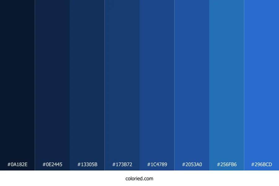![]() | #0A182E | 10, 24, 46 | 217, 64%, 11% | 78%, 48%, 0%, 82% | oklch(0.210 0.048 259) |
