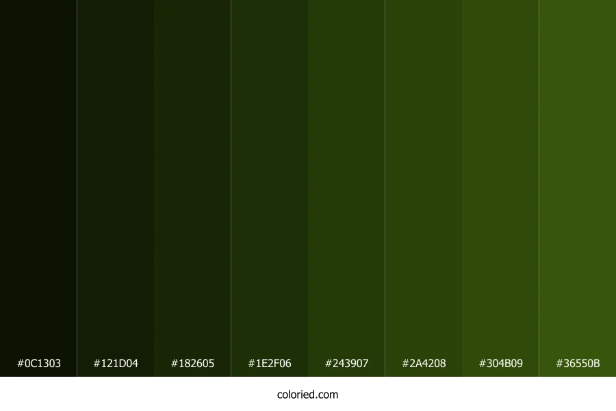 | #36550B | 54, 85, 11 | 85, 77%, 19% | 36%, 0%, 87%, 67% | oklch(0.410 0.104 131) |