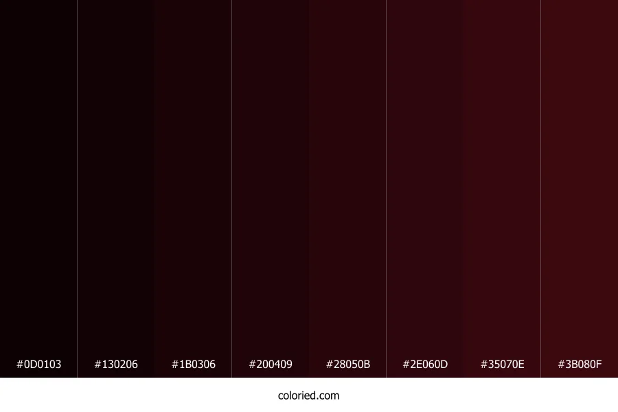 ![]() | #0D0103 | 13, 1, 3 | 350, 86%, 3% | 0%, 92%, 77%, 95% | oklch(0.109 0.034 7) |