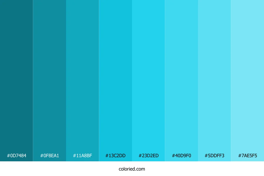| #7AE5F5 | 122, 229, 245 | 188, 86%, 72% | 50%, 7%, 0%, 4% | oklch(0.864 0.101 208) |