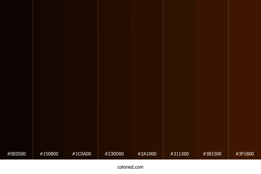 | #3F1800 | 63, 24, 0 | 23, 100%, 12% | 0%, 62%, 100%, 75% | oklch(0.264 0.071 49) |