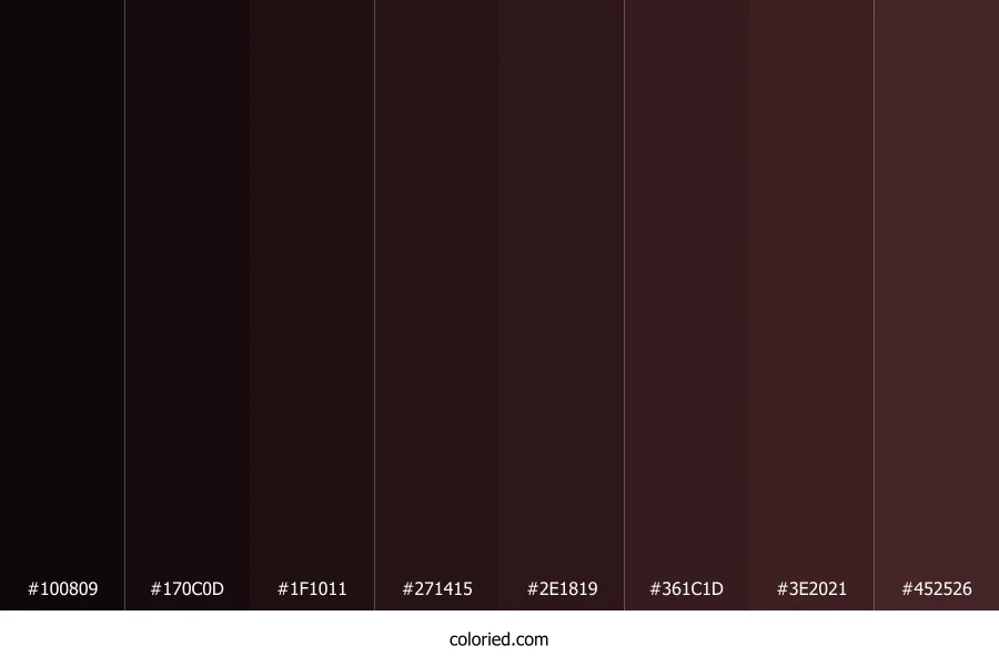 | #1F1011 | 31, 16, 17 | 356, 32%, 9% | 0%, 48%, 45%, 88% | oklch(0.195 0.025 15) | |