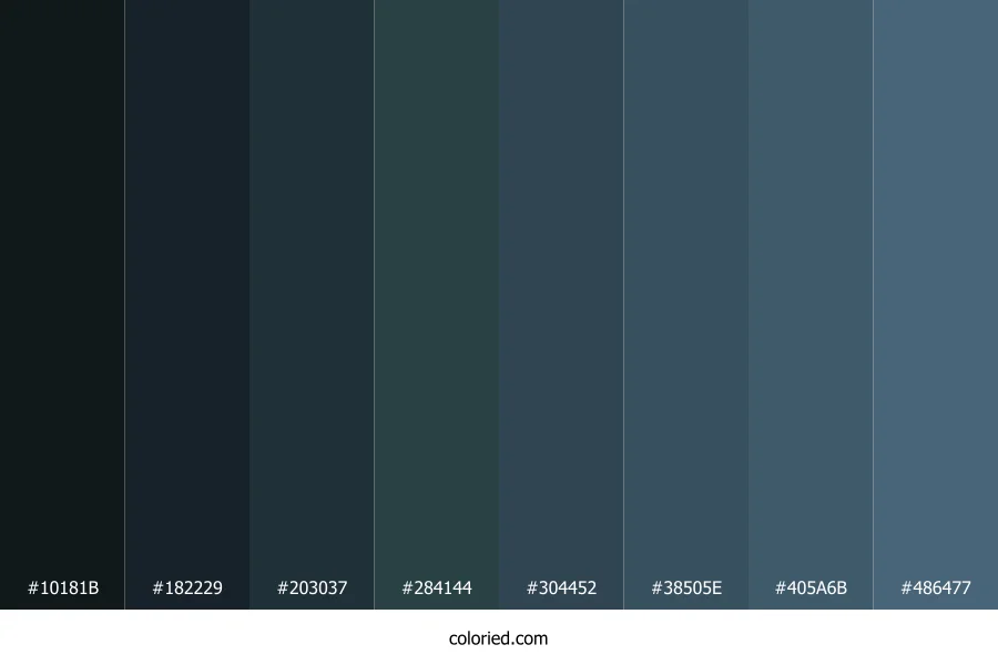 | #203037 | 32, 48, 55 | 198, 26%, 17% | 42%, 13%, 0%, 78% | oklch(0.298 0.025 227) | |